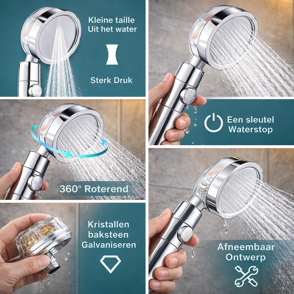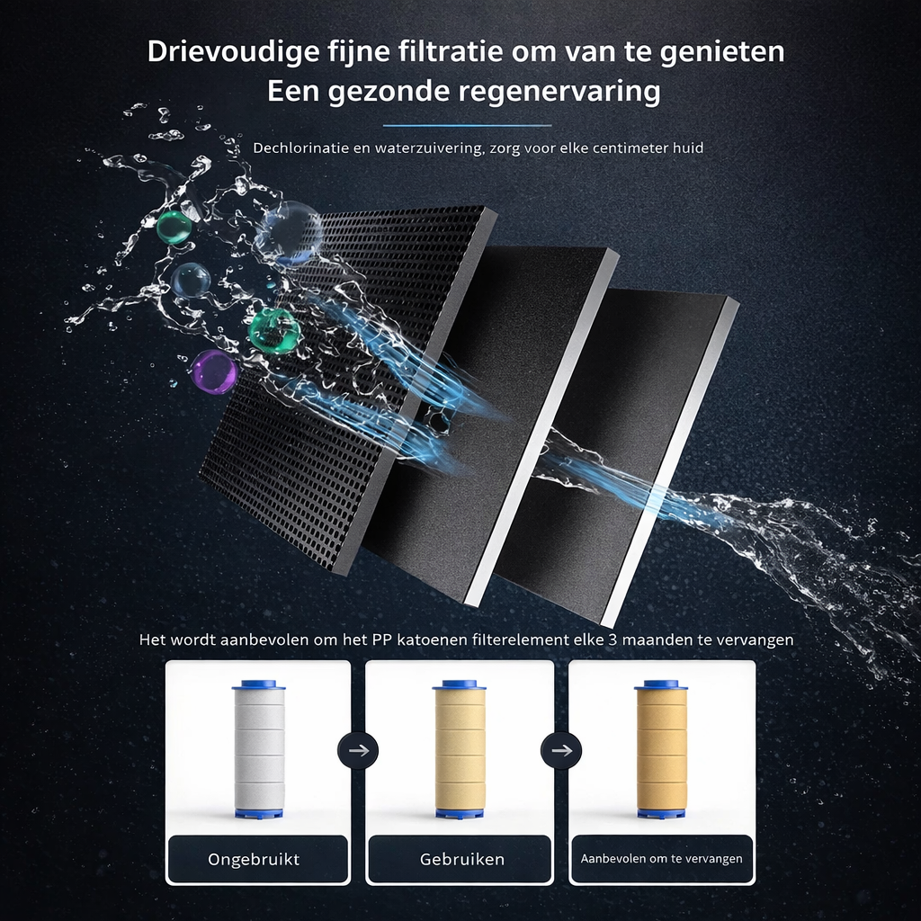 De ingebouwde filters zijn bedoeld om onzuiverheden in het water te helpen verminderen, wat kan bijdragen aan een prettigere douche-ervaring.De douchekop is ontworpen om efficiënt met water om te gaan door de waterstroom te optimaliseren, zonder dat dit ten koste gaat van het comfort.