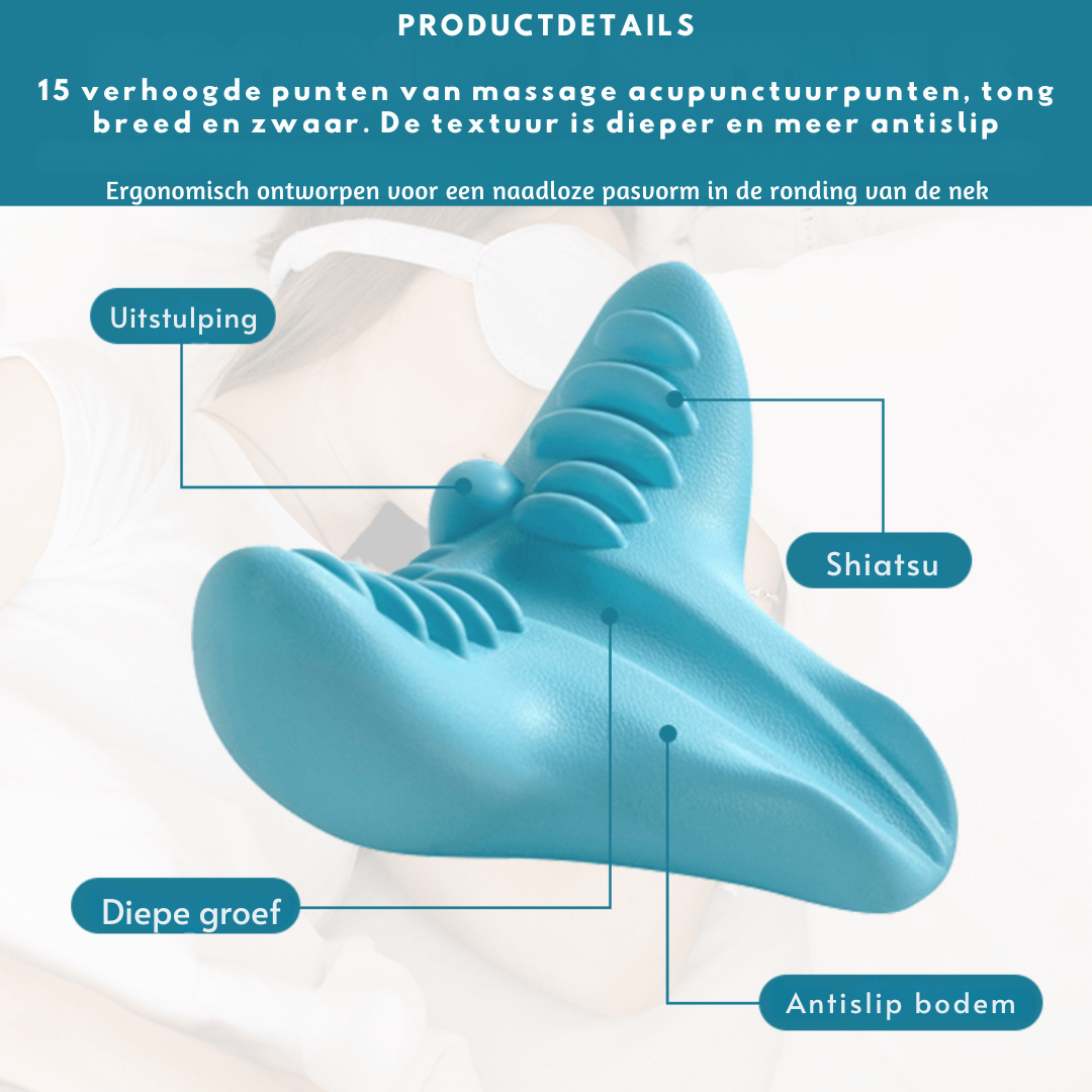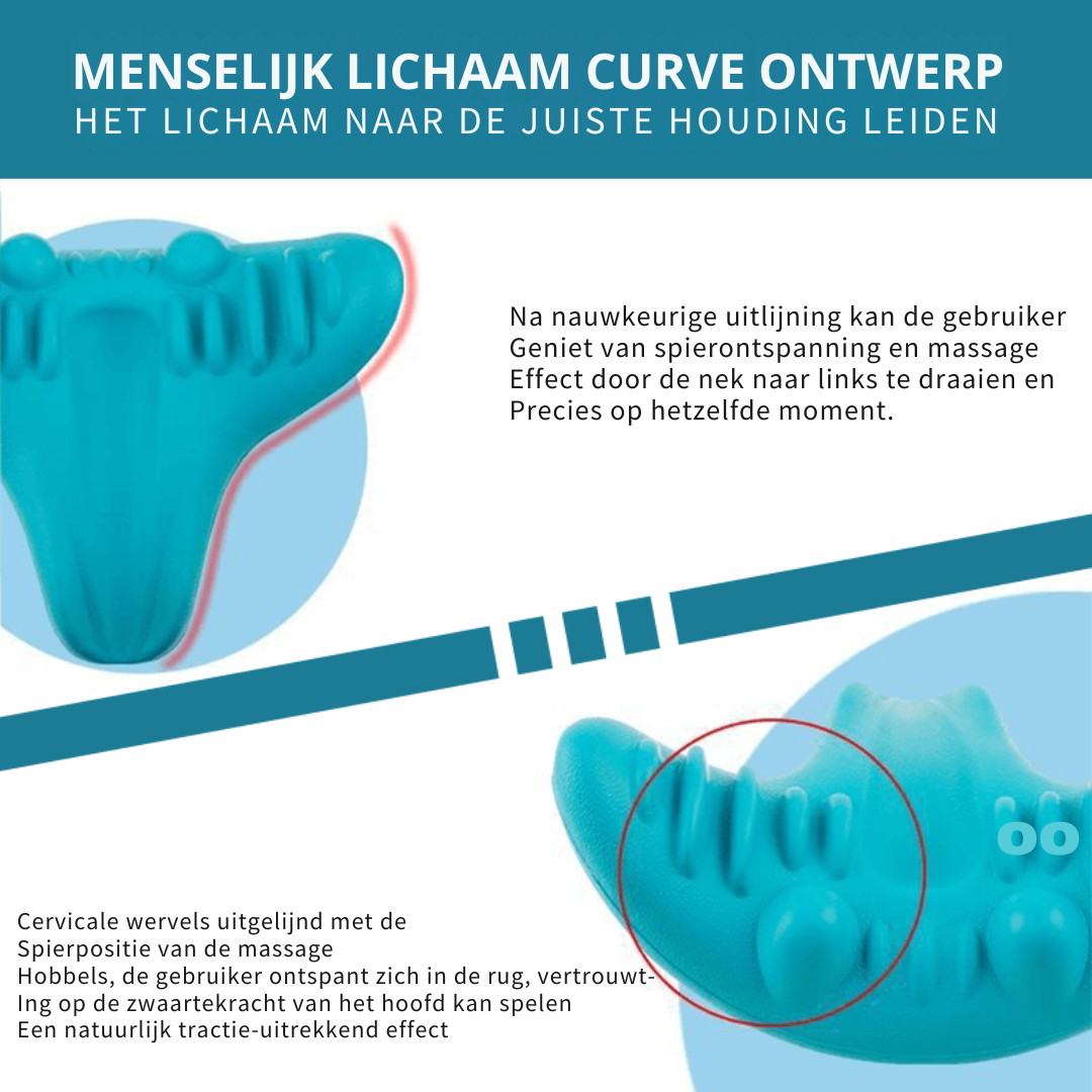 Dit chiropractisch nekkussen met massagepunten is ontworpen om perfect aan te sluiten en de nekwervelkolom in de juiste positie te ondersteunen, wat zorgt voor een comfortabele massage.