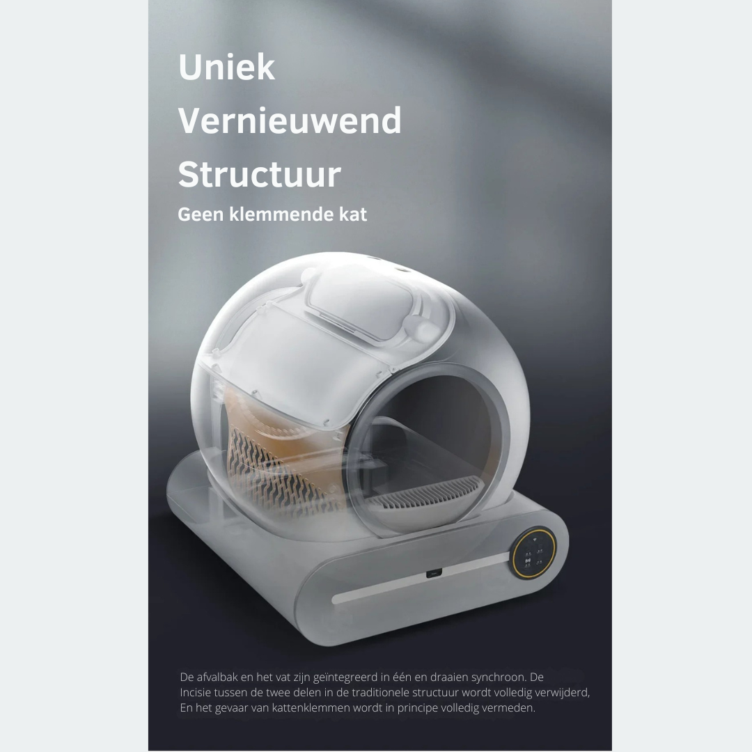 Deze slimme, automatische kattenbak reinigt zichzelf volledig na elk gebruik, elimineert nare luchtjes en houdt jouw huis fris en hygiënisch zonder dat jij een vinger hoeft uit te steken.