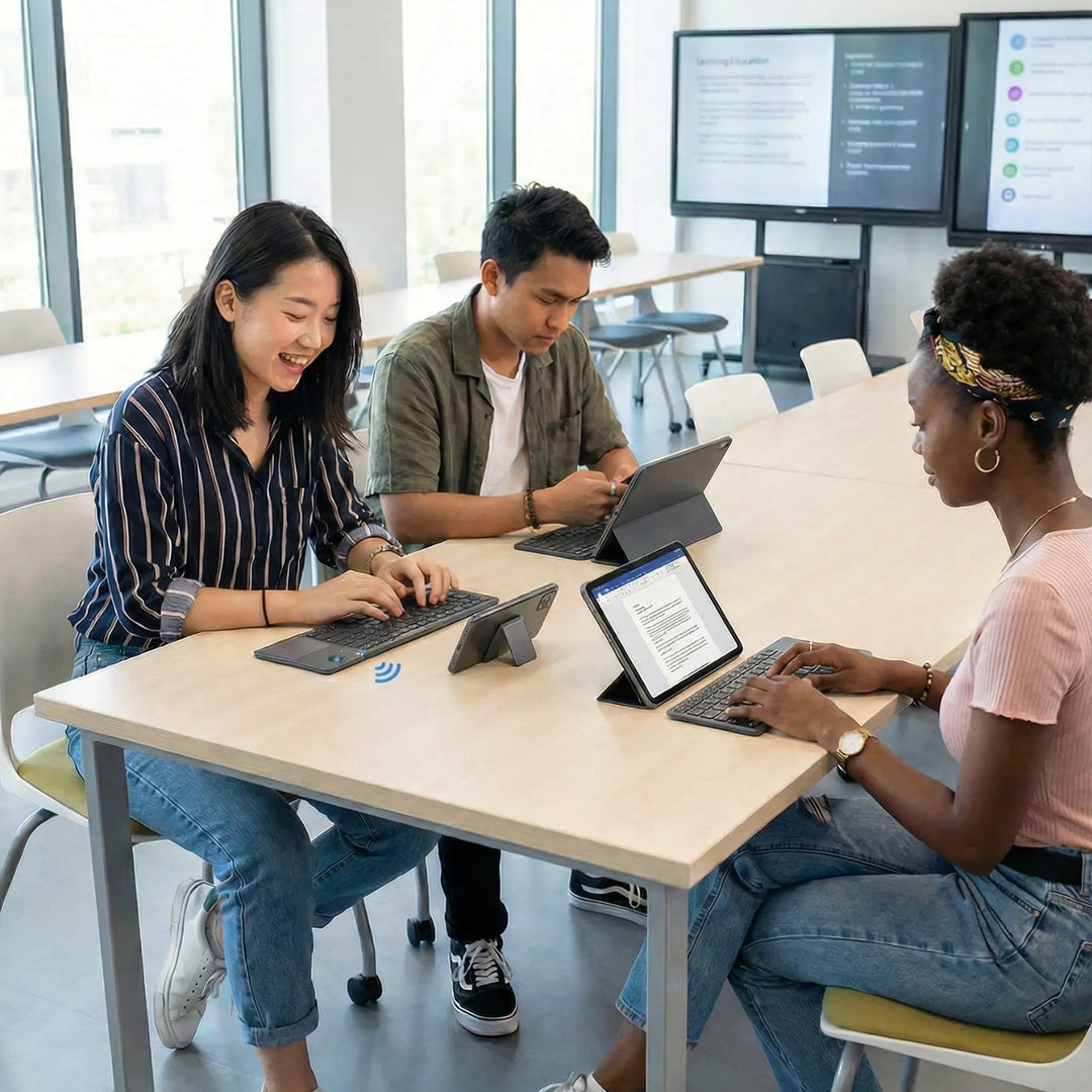 Het toetsenbord maakt direct verbinding via Bluetooth, zonder ingewikkelde instellingen of technische installatie.