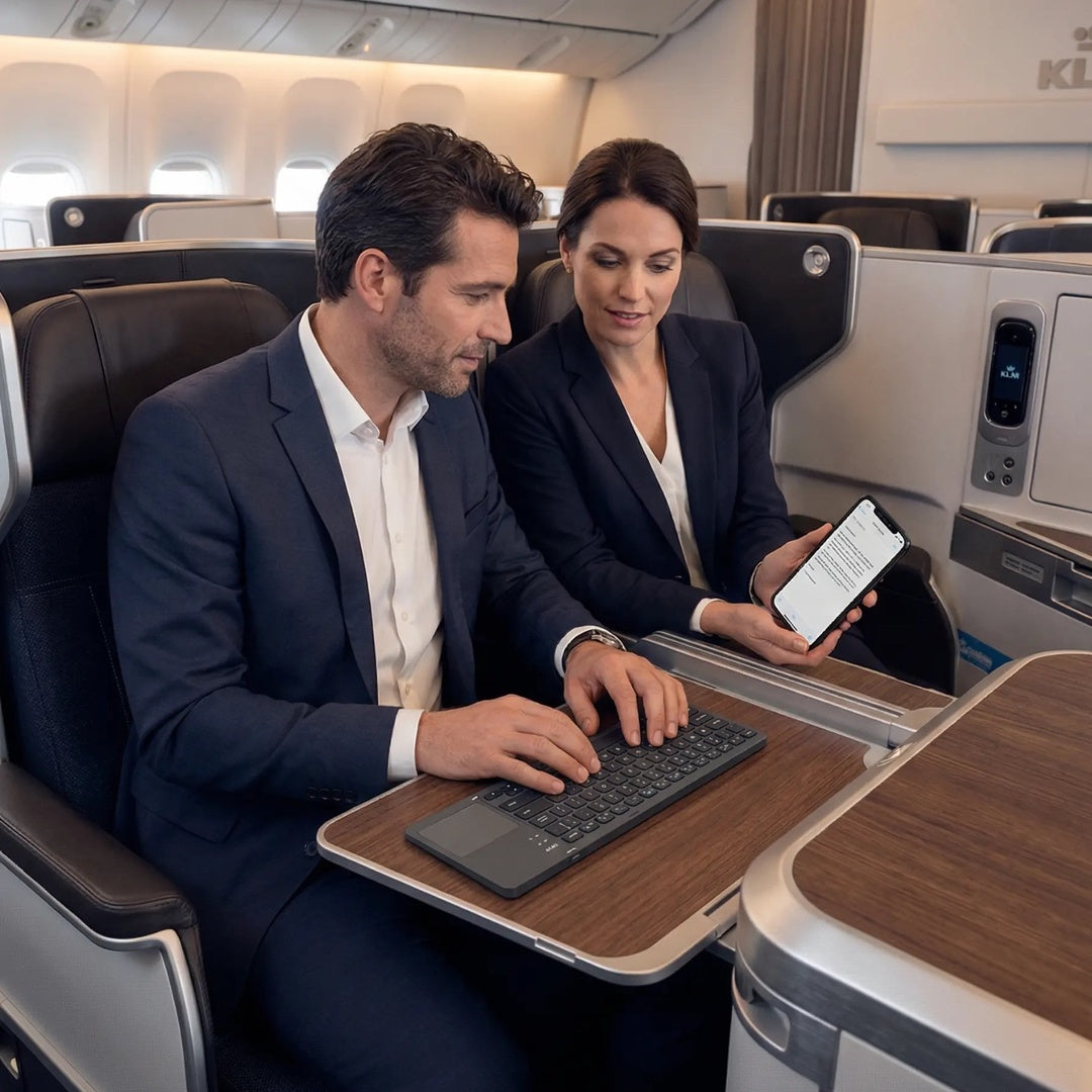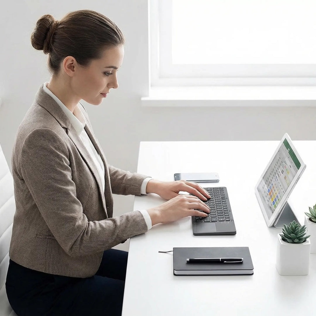 Neemt weinig ruimte in, maar biedt alles wat je nodig hebt voor comfortabel typen. Ideaal voor bureau, bank of onderweg.